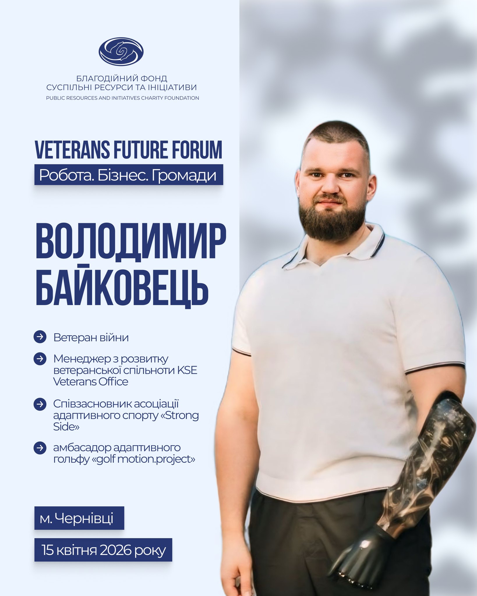 Meet the speakers of the Veterans Future Forum: Jobs. Business. Communities — the first platform of the veteran economy. April 15 in Chernivtsi: