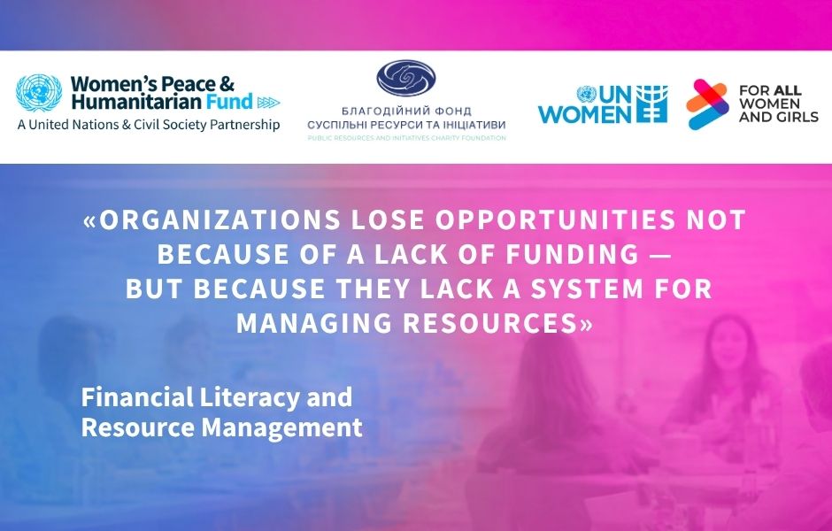 As part of the project “Strengthening the Institutional Capacity of the Public Resources and Initiatives Charity Foundation”, implemented with the technical support of UN Women in Ukraine and funded by the UN Women’s Peace and Humanitarian Fund (WPHF), an online training titled “Financial Literacy and Resource Management: Fundraising and Donor Reporting” was conducted.