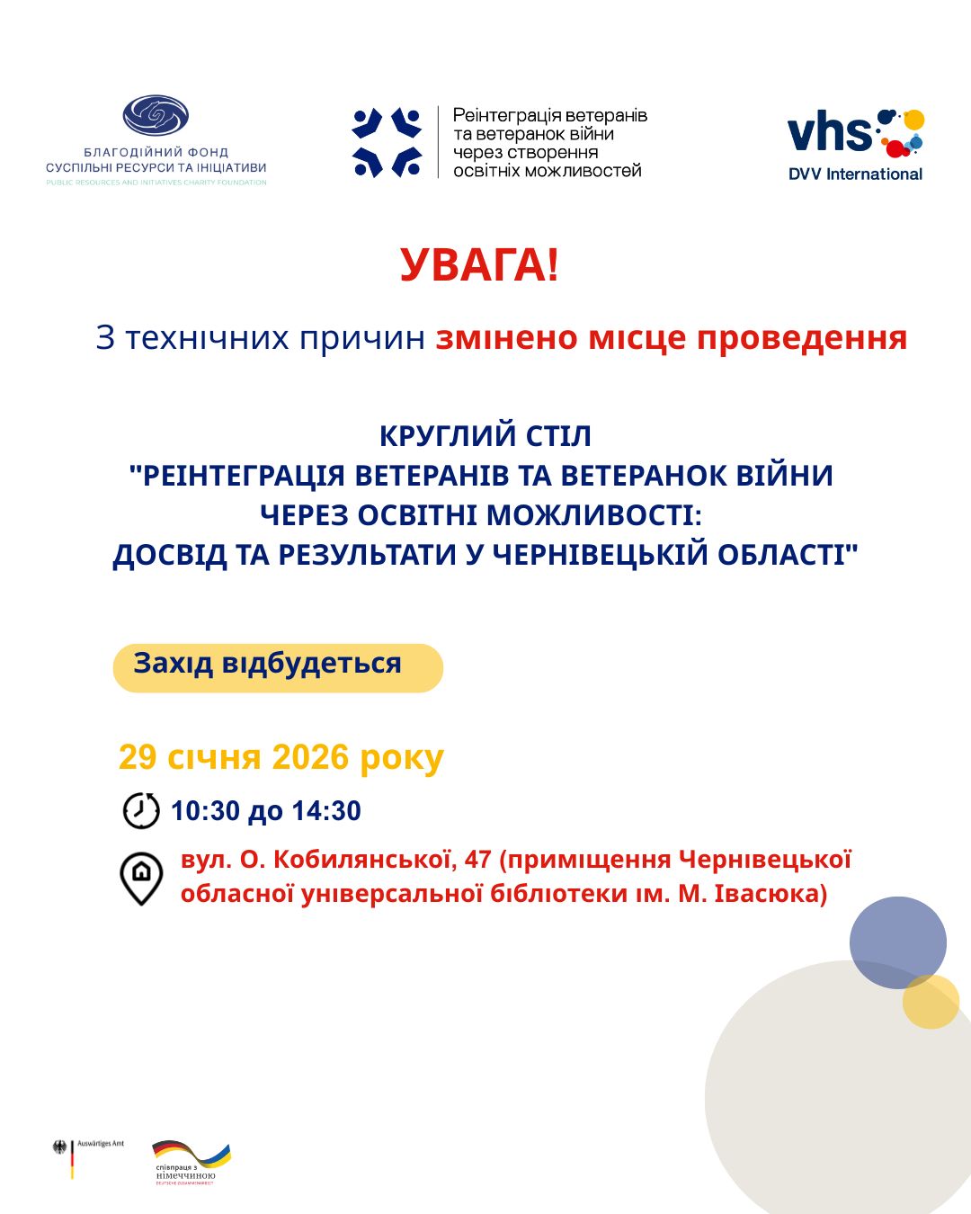 УВАГА! З технічних причин змінено місце проведення круглого столу 29 січня 2026 р.