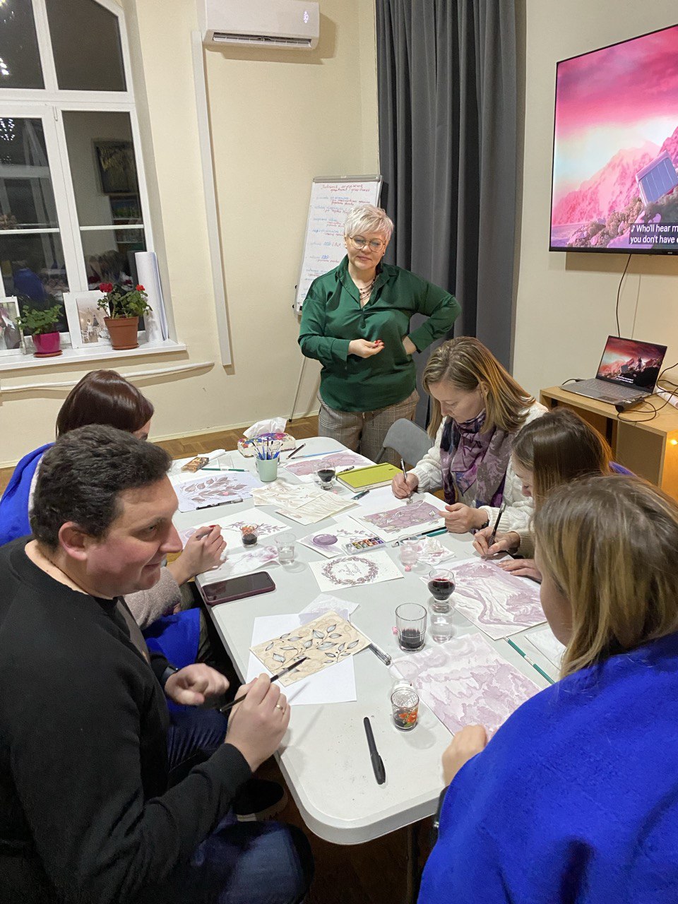 «Наприкінці року ми зазвичай підводимо підсумки, звітуємо про роботу, плануємо на майбутнє. І дуже важливо серед усієї метушні зупинитися, щоб видихнути, відчути момент і побути разом», — поділилася Любов Ярошик, представниця Фонду в Чернігові. За її словами, це був не просто творчий експеримент, а повноцінний арттерапевтичний простір, у якому аромат кави та м’які рухи пензля допомогли сповільнитися, відпустити напругу та прислухатися до себе. Кожна робота стала відображенням внутрішнього стану, підсумком року й водночас м’яким переходом до нового етапу. Через просту дію — малювання — учасники проживали емоції, дякували собі за пройдений шлях і наповнювалися ресурсом.