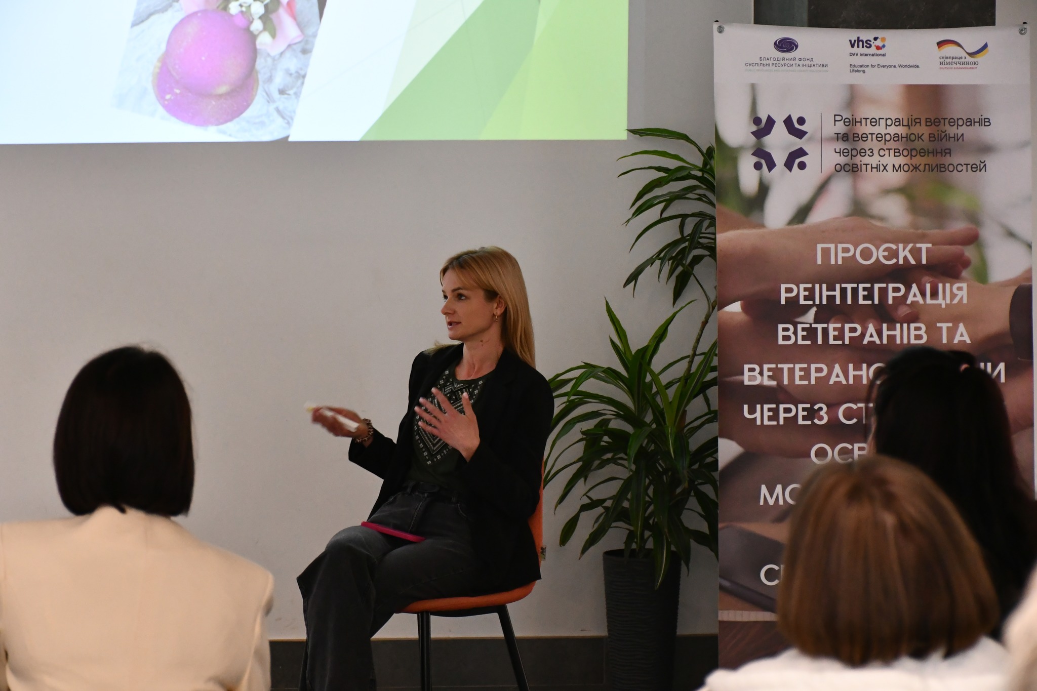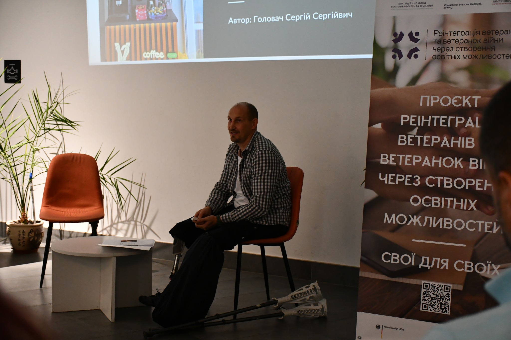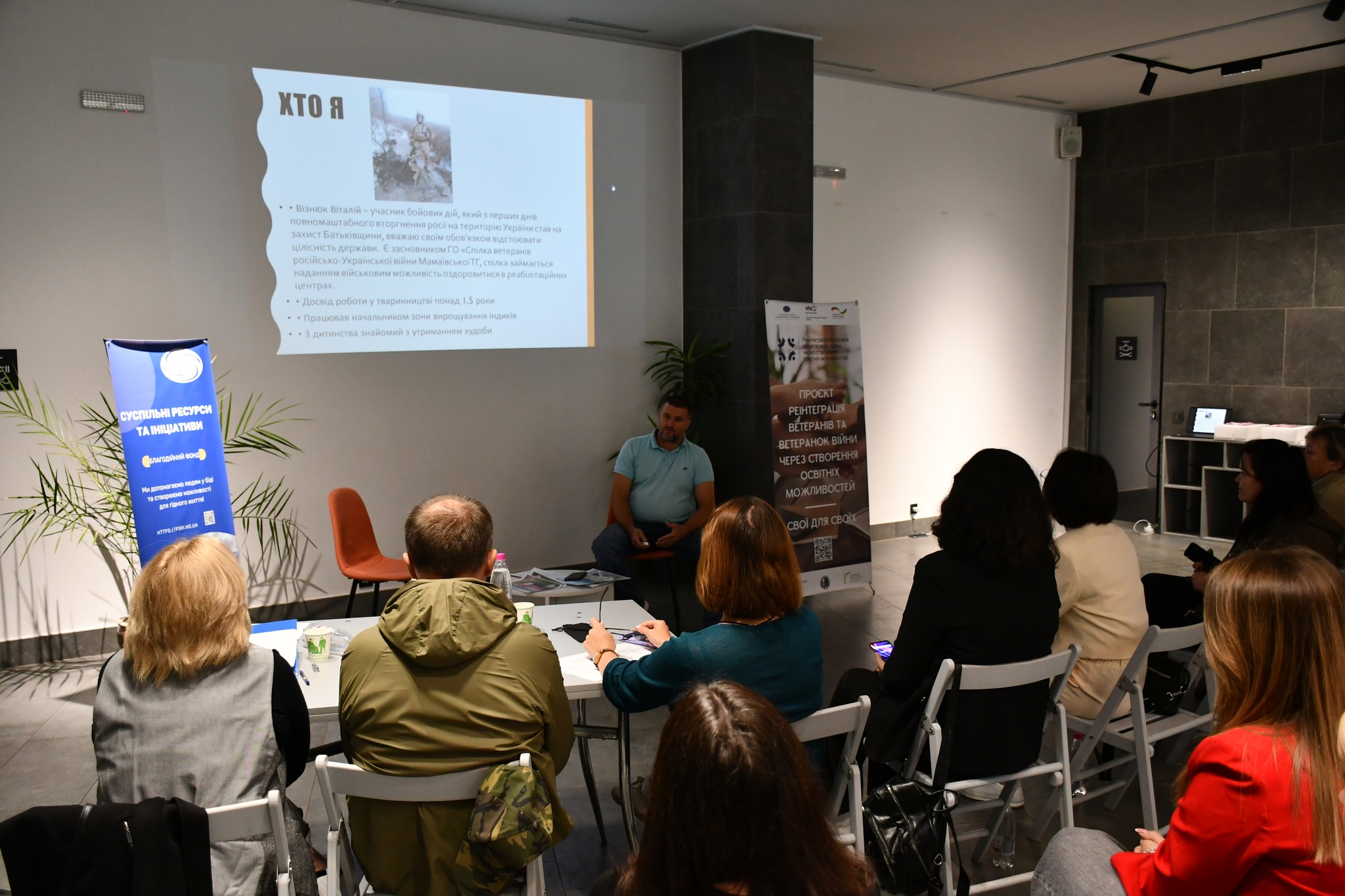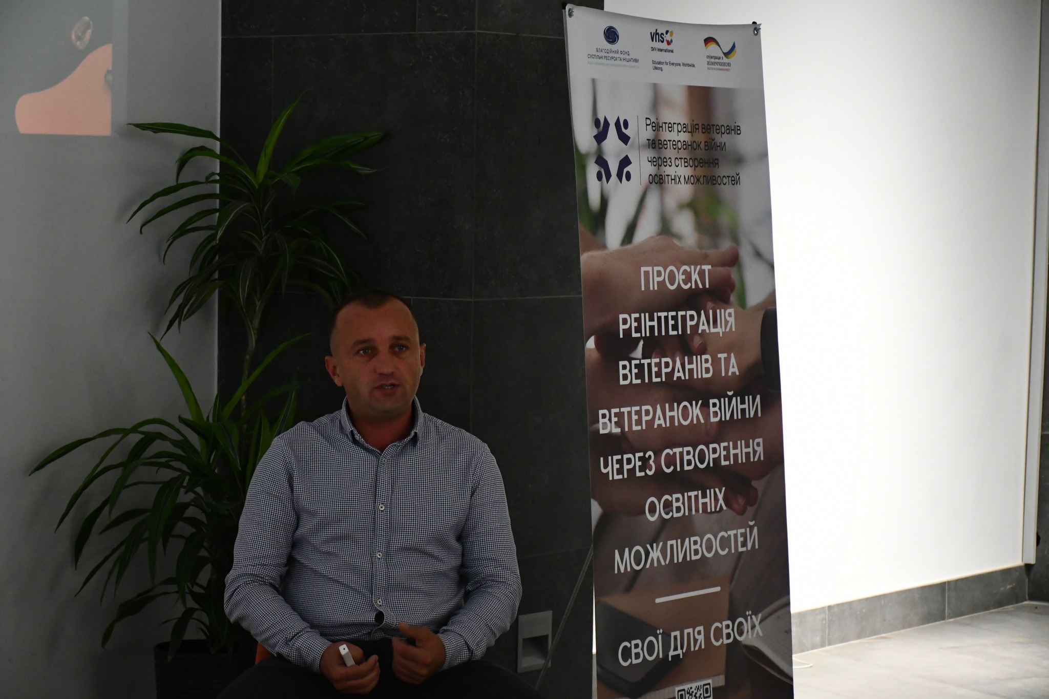 Проєкт «Реінтеграція ветеранів та ветеранок війни через створення освітніх можливостей: Свої для своїх» здійснюється Благодійним фондом «Суспільні ресурси та ініціативи» у партнерстві з DVV International в Україні за підтримки Федерального міністерства закордонних справ Німеччини. Реалізація проєкту триватиме до лютого 2026 року та передбачає створення освітніх і консультаційних можливостей у різних громадах України.