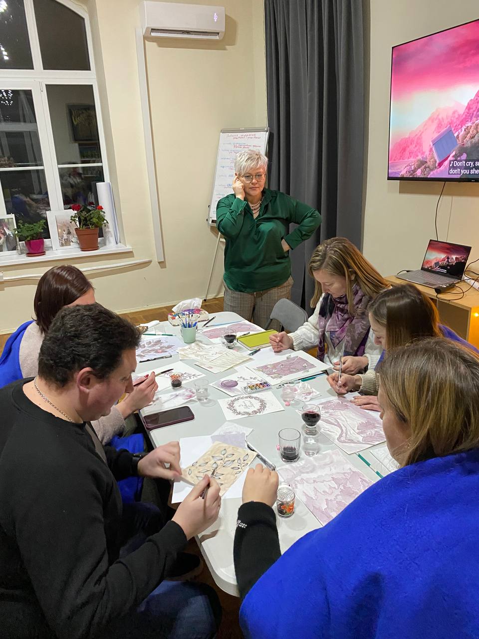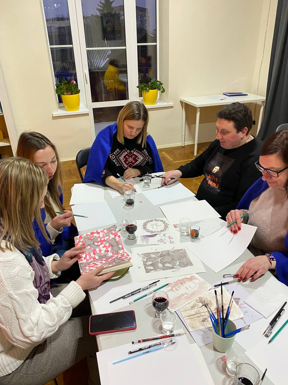 «Наприкінці року ми зазвичай підводимо підсумки, звітуємо про роботу, плануємо на майбутнє. І дуже важливо серед усієї метушні зупинитися, щоб видихнути, відчути момент і побути разом», — поділилася Любов Ярошик, представниця Фонду в Чернігові. За її словами, це був не просто творчий експеримент, а повноцінний арттерапевтичний простір, у якому аромат кави та м’які рухи пензля допомогли сповільнитися, відпустити напругу та прислухатися до себе. Кожна робота стала відображенням внутрішнього стану, підсумком року й водночас м’яким переходом до нового етапу. Через просту дію — малювання — учасники проживали емоції, дякували собі за пройдений шлях і наповнювалися ресурсом.