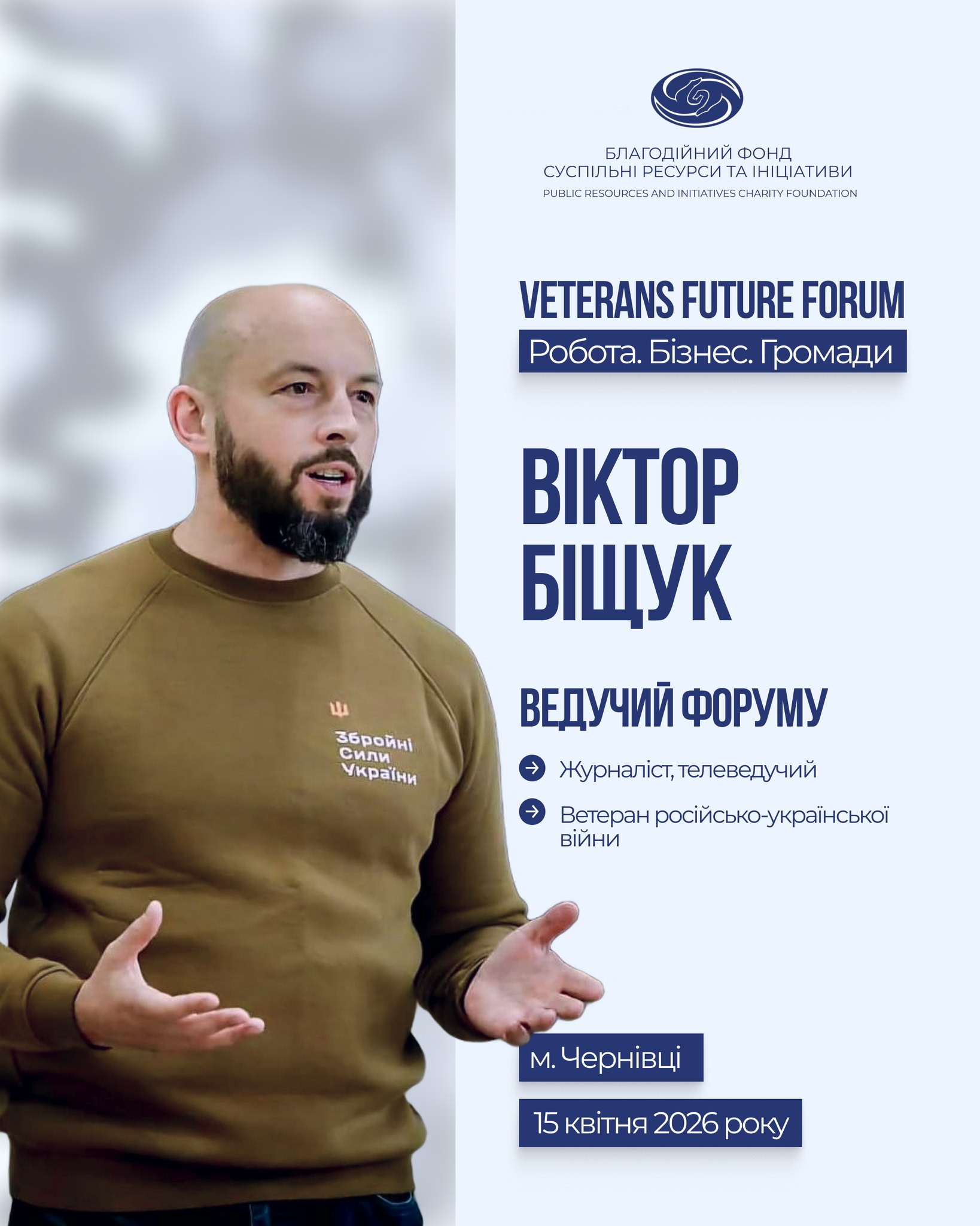 Ведучий Форуму - Віктор Біщук, журналіст, телеведучий, ветеран російсько-української війни