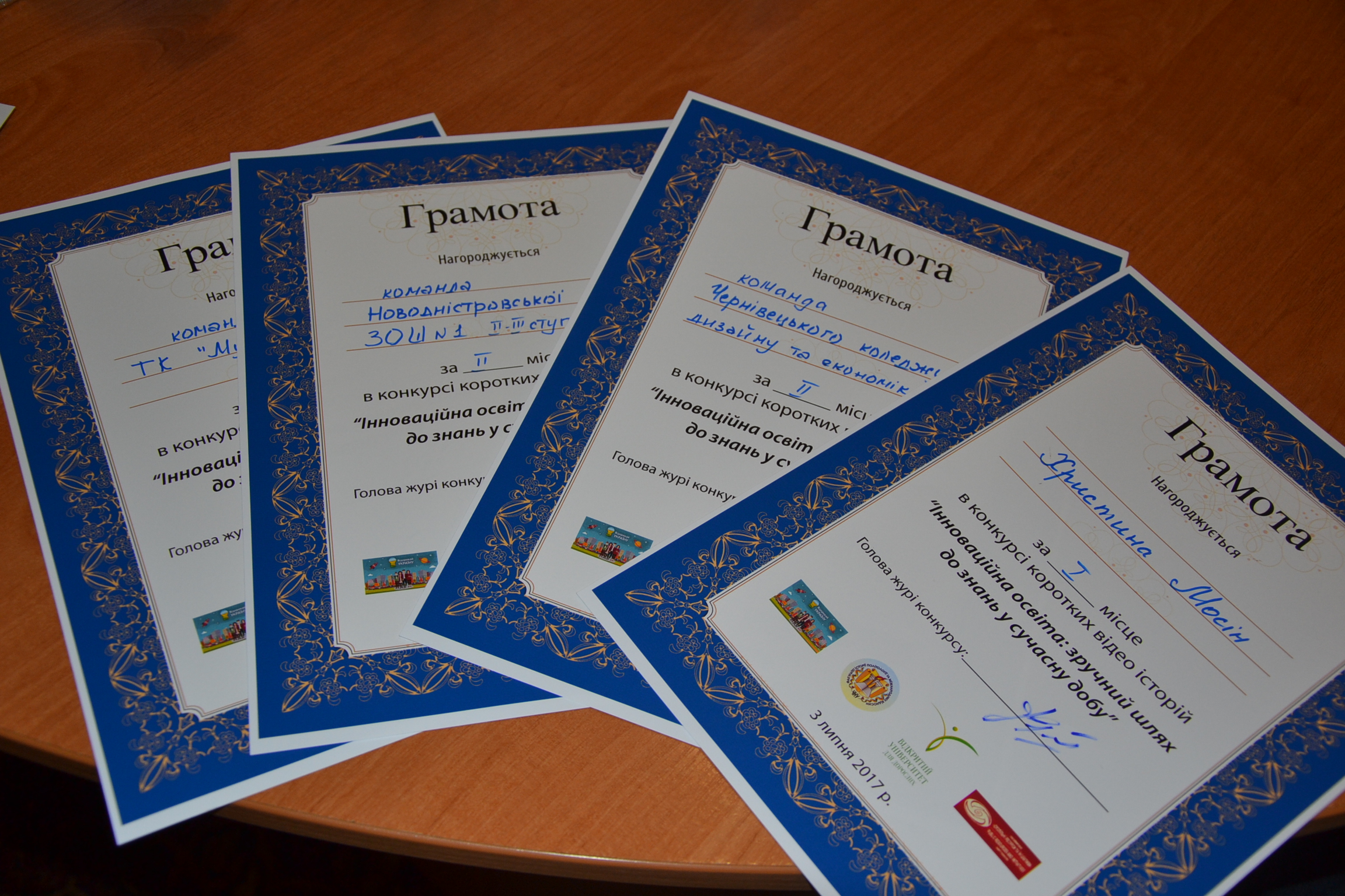 У червні цього року Освітній проект «Відкривай Україну» спільно з Відкритим університетом для дорослих, кафедрою політології та державного управління Чернівецького національного університету імені Юрія Федьковича та БФ «Суспільні ресурси та ініціативи» провели конкурс коротких відео сюжетів «Інноваційна освіта: зручний шлях до знань у сучасну добу». Учасники конкурсу повинні були підготувати оригінальні відео історії (тривалістю від 3 до 5 хвилин), присвячені проблемам використання сучасних технологій,робототехнікив навчальному процесі, неформальну освіту тощо.