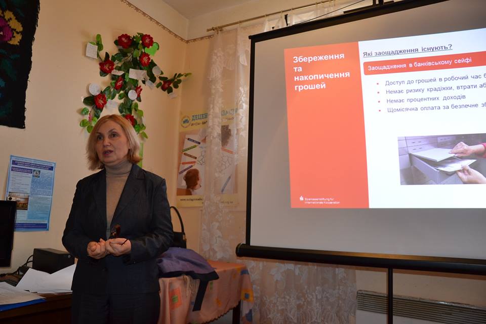 Учасники заходу отримали інформацію про особливості формування сімейного бюджету, дізналися про різні способи накопичення грошей, різновиди кредитів та фінансових послуг. Раїса Юрійчук відповіла на запитання учасників щодо специфіки роботи банків, переваги та недоліки зберігання грошей вдома, у банківському сейфі, на депозиті тощо. Чимало запитань виникло щодо кредитування, використання кредитних карток та депозитних карток з овердрафтом.