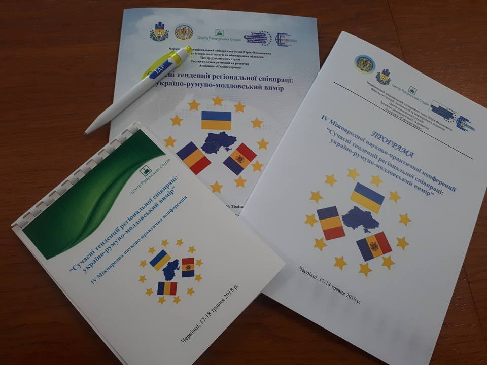 17-18 р. відбулася IV Міжнародна науково-практична конференція "Сучасні тенденції регіональної співпраці: україно-румуно-молдовський вимір", організований Центром румунських студій Факультету історії, політології та міжнародних відносин Чернівецького національного університету імені Юрія Федьковича, Інститутом демократизації та розвитку, Асоціації «Євроцентрика». Співорганізатором конференції був Благодійний фонд «Суспільні ресурси та ініціативи».