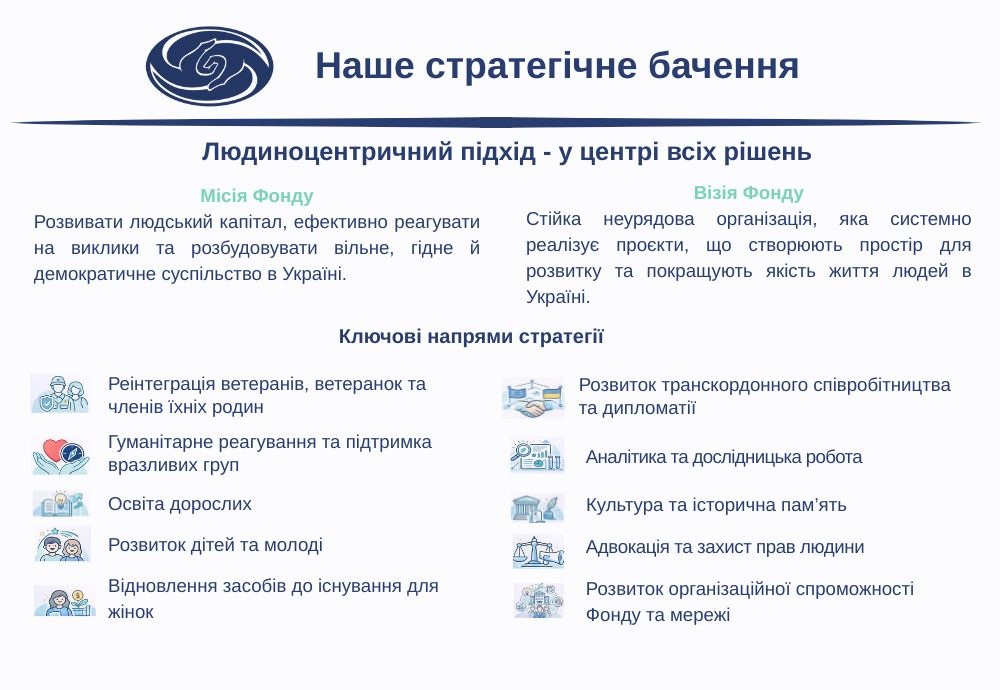 To develop human capital, respond effectively to challenges, and contribute to building a free, dignified, and democratic society in Ukraine.