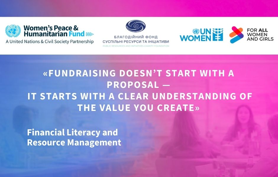 As part of the project “Strengthening the Institutional Capacity of the Public Resources and Initiatives Charity Foundation”, implemented with the technical support of UN Women in Ukraine and funded by the UN Women’s Peace and Humanitarian Fund (WPHF), an online training titled “Financial Literacy and Resource Management: Fundraising and Donor Reporting” was conducted.